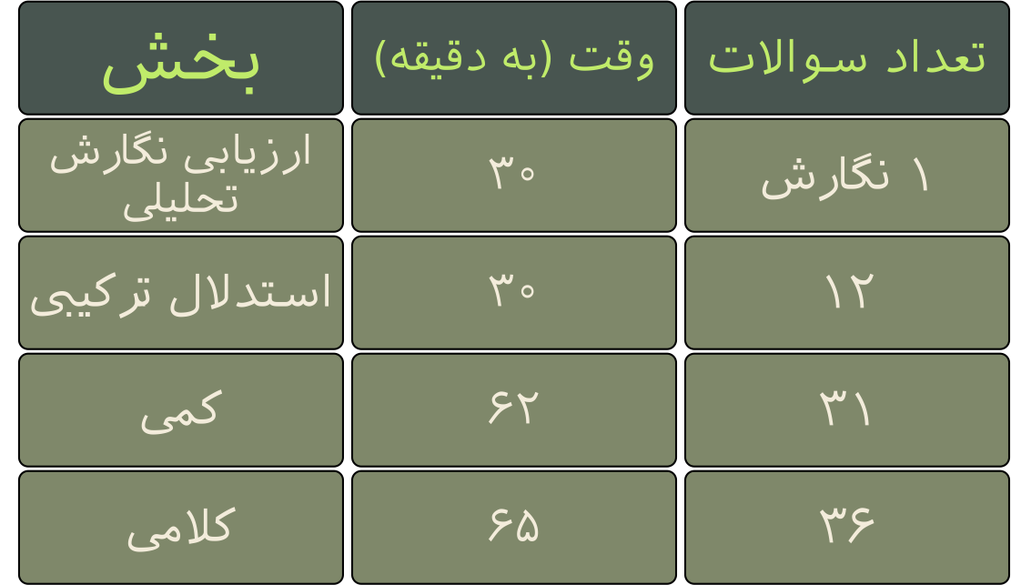 • ارزیابی نگارش تحلیلی، استدلال ترکیبی، کمی، کلامی (ترتیب اصلی)